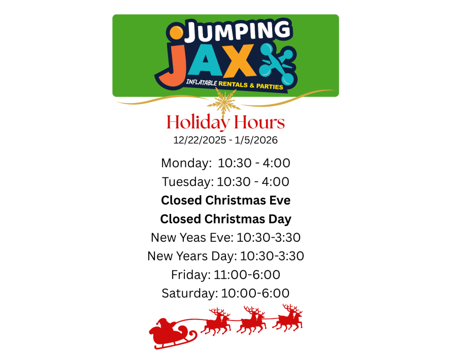 At Jumping Jax, we've got everything you need to make your event unforgettable. And the best part? Booking with us is a breeze! Just head to our website, choose your favorite product, and reserve it in just a few clicks. It's like magic - but without the wands and spells.