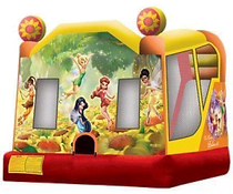 This Disney Fairies themed bounce house is sure to delight! It includes a bounce area, basketball hoop, and small interior slide.