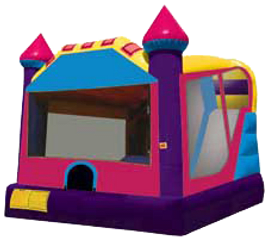 Our Princess Dream Combo inflatable includes a bounce area, basketball goal, and small slide.
