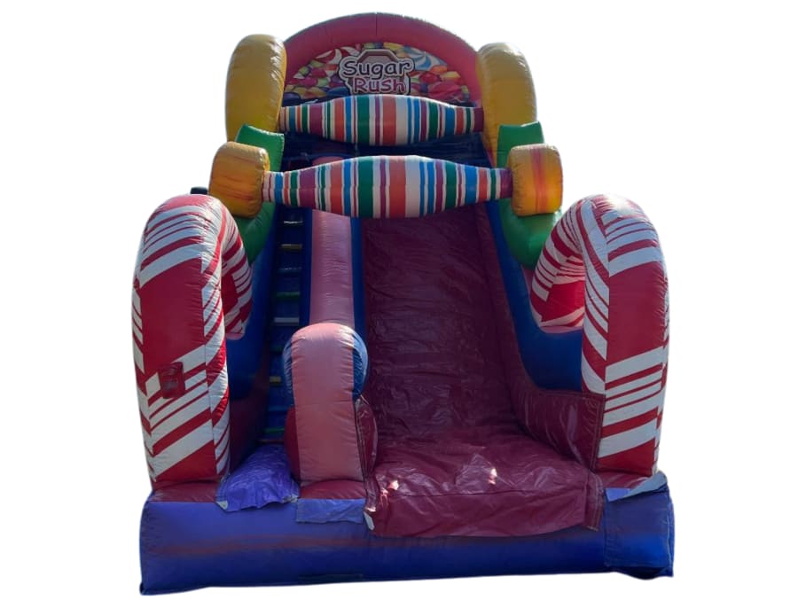 The Sugar Rush Slide is a vibrant, themed inflatable slide designed to steal the show at birthdays, school events, and family festivals. Bright candy colors and a playful design create instant excitement. Easy to set up and built for fun, the Sugar Rush Slide delivers safe thrills for kids and peace of mind for adults. 🍬🛝